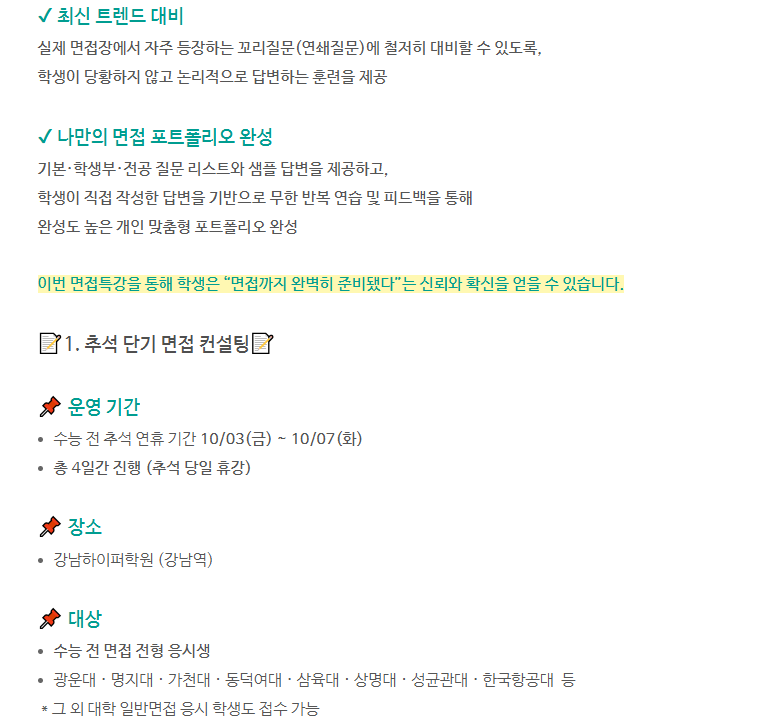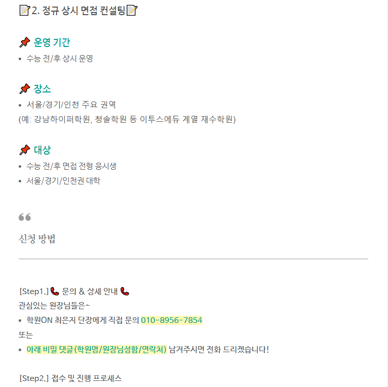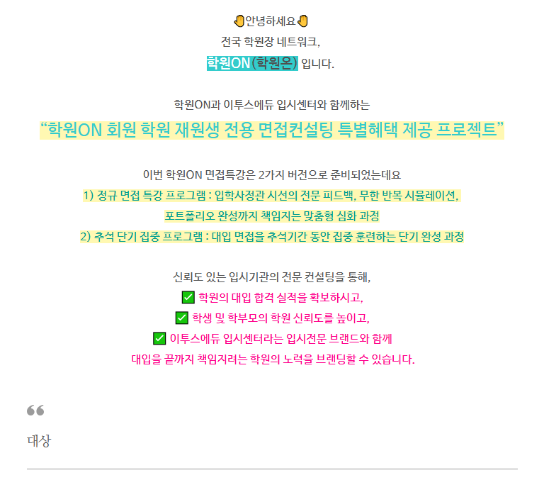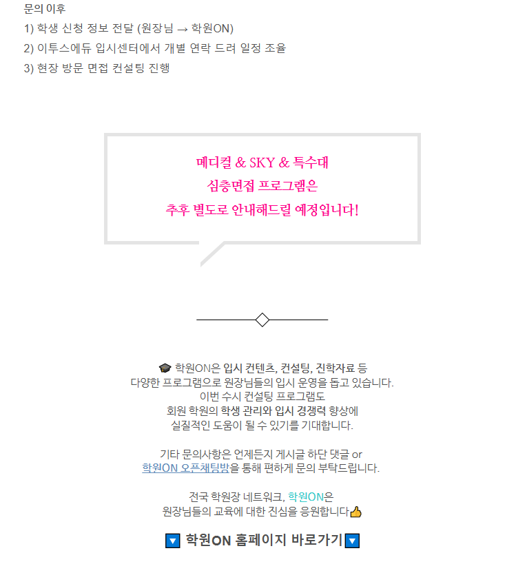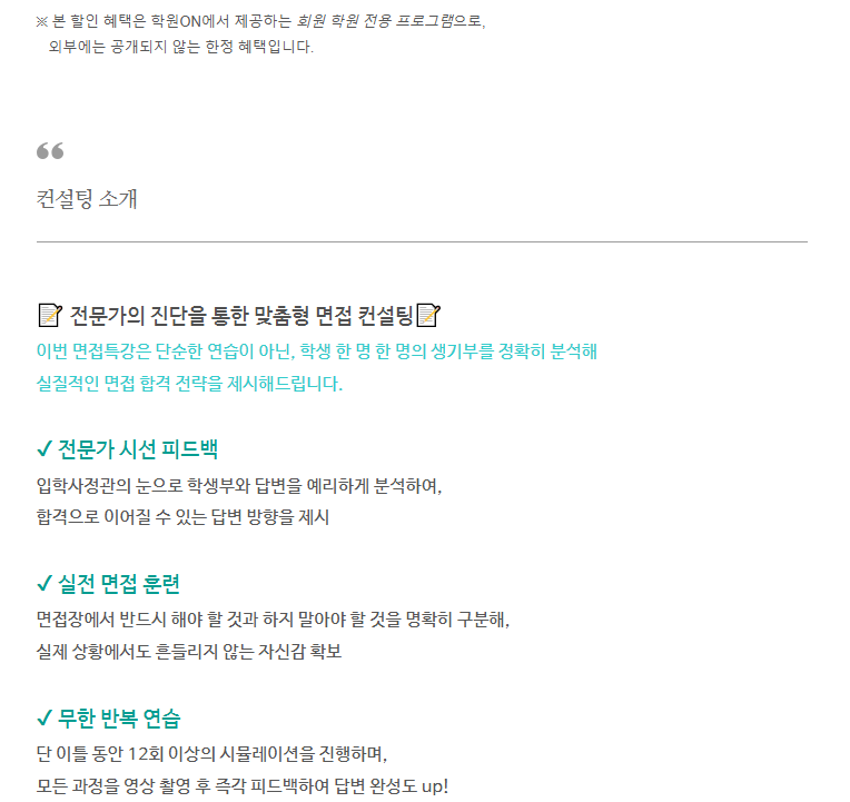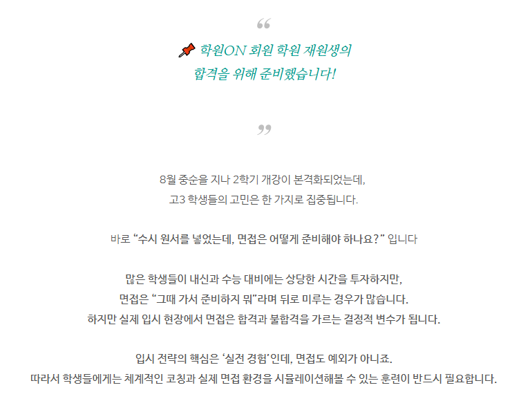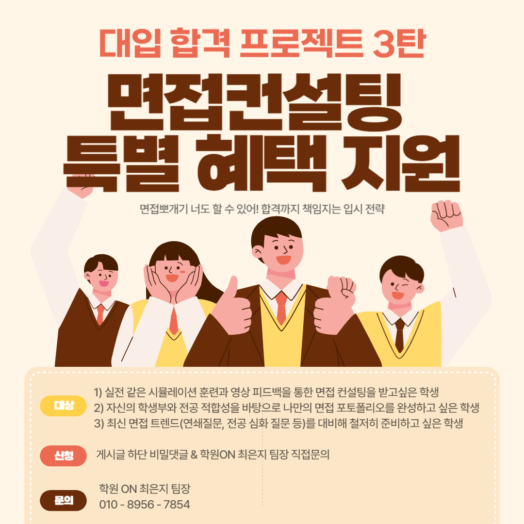 학원ON 회원 학원, 대입 합격 프로젝트 3탄! 면접 컨설팅 특별 혜택 지원