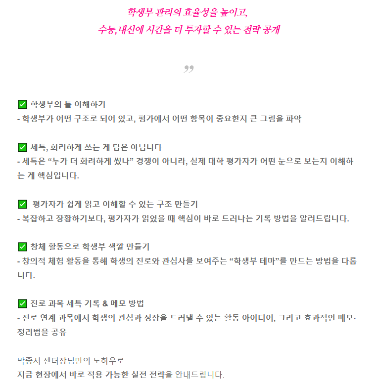 “학생부, 효율적으로 관리하고 성적은 더 챙기자!” 10월 2차 학원ON 온라인 무료 특강 안내