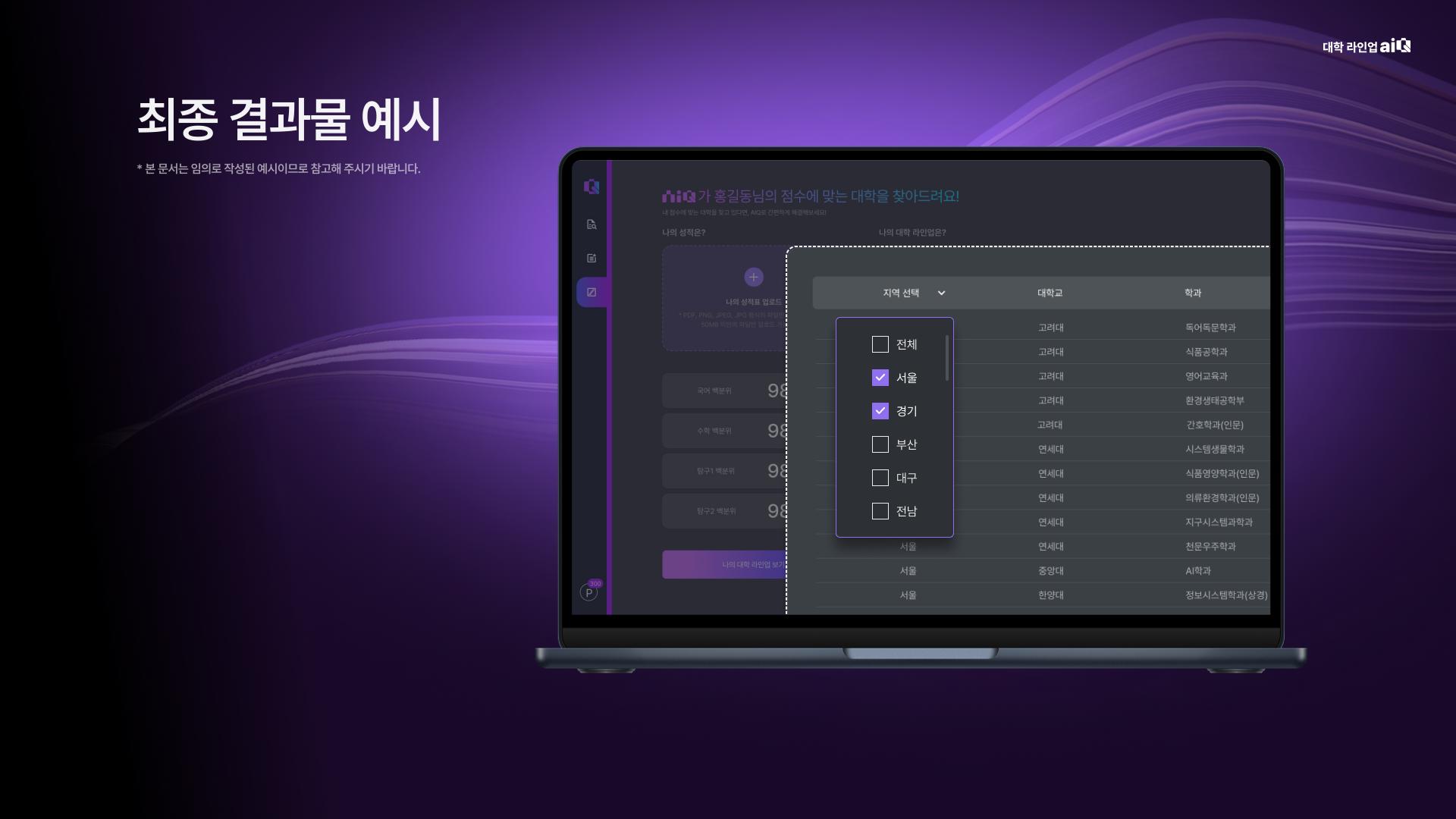 학생의 학력평가 성적을 입력하면, 과거 입시 결과에 기반해