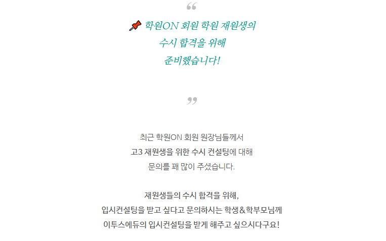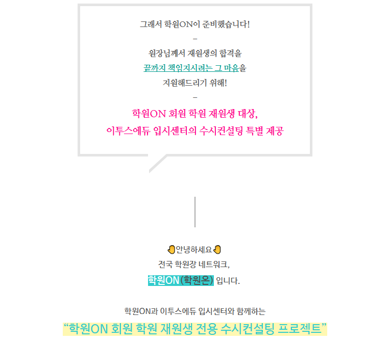 이투스에듀 입시센터 X 학원ON 회원 학원, 대입 합격 프로젝트 1탄! 수시컨설팅 특별 지원